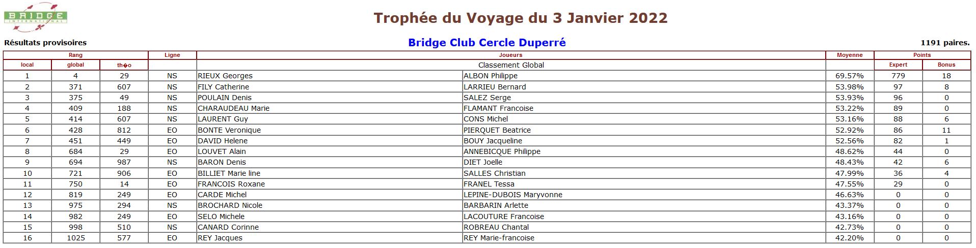 | 1 | 4 | 29 | NS | RIEUX Georges | ALBON Philippe | 69.57% | 779 | 18 |